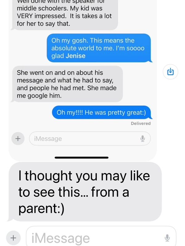 Jay's ability to inspire our middle school students was nothing short of remarkable. He challenged them to never make excuses and to realize that their potential is truly limitless as long as they are alive. His words ignited a spark of motivation and hope in our students that I believe will carry them far beyond the classroom.