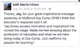 Jay’s enthusiasm for Educational Technology is contagious! He is so willing to help whether you are a novice or an expert. His willingness to give out his phone number and support at any time is genuine. It was a great training that made me leave wanting more!