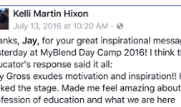 Jay opened my eyes to his particular blended learning model and gave helpful insight into the abundant free sources available for our students to take advantage of.