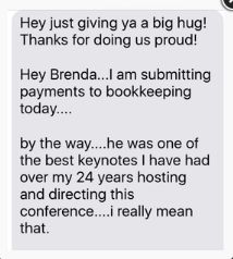Here are real testimonials from people who hired me and audience members who attended my Keynotes & Sessions.