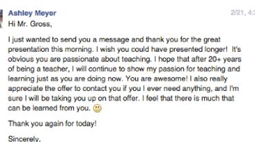 I attended your professional development seminar today at Brandywine, and I was SO impressed! I have been teaching since 1985....I am now 60. In all my years of PD days, you are the most inspirational person I have seen!